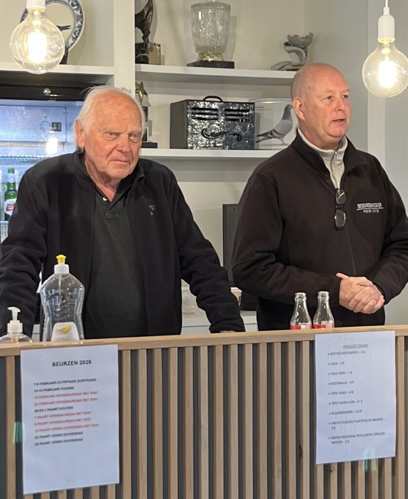 Mark Valentijn en Jef Korsmith. Jef wil met duiven starten. Mark is goed voorbeeld.