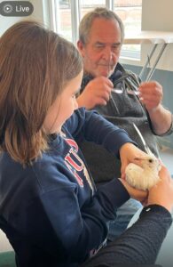 Noortje Geerts en Theo Misseghers (oefenen met duif vasthouden)